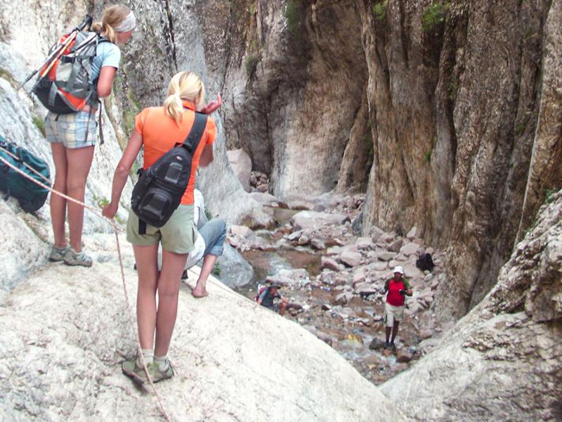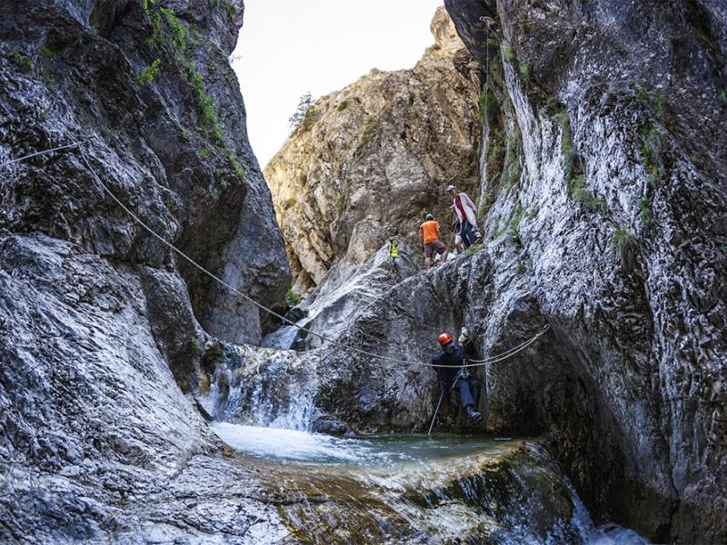 Очень интересно прохождение Гулькамского каньона – на крутых, отполированных водой скалах гиды провешивают страховочную верёвку, и неискушённый человек может на какое то время почувствовать себя альпинистом (не нужны гидрокостюмы и личное альпинистское снаряжение). Местами приходится уклоняться от пенящихся здесь же струй водопадов и перепрыгивать через скальные ванночки с кристально-чистой водой. При этом всё прохождение каньона организовано горными гидами максимально безопасно. При желании возможно купание в скальных ванночках и под водопадами. Пройдя Гулькамский каньон, выходим к посёлку Янгикурган. Здесь группу ожидает автотранспорт.